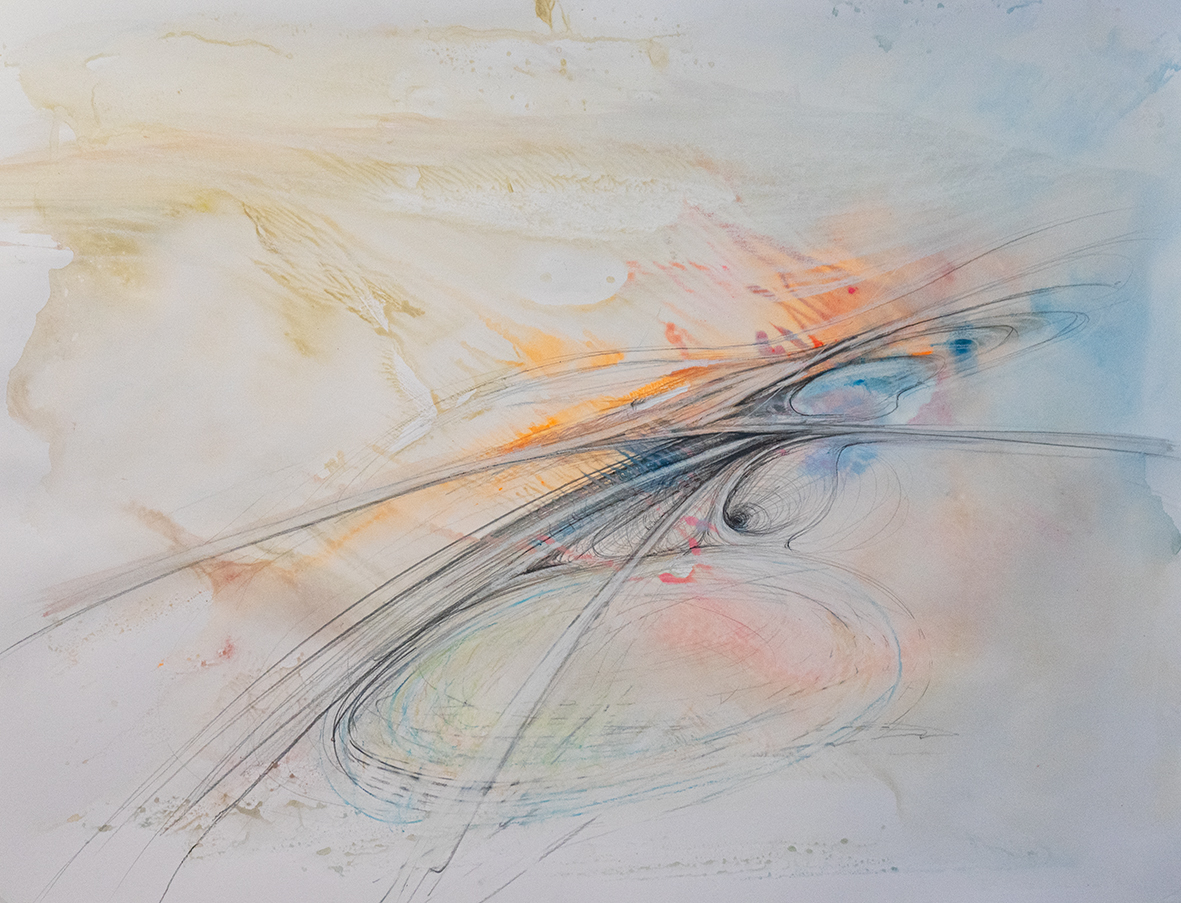Die allem zugrunde liegende Struktur, der erste Gedanke zu einem neuen Projekt, oder einfach nur eine besondere Oberflächenbeschaffenheit, lassen sich für mich am besten durch das Zeichnen mit Bleistift auf Papier oder Aquarell einfangen.